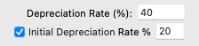 Initial Depreciation: Turn this checkbox on only if the asset can be depreciated on purchase (such as for the New Zealand "Investment Boost" scheme), and if you are ready to save the asset. When turned on, you can enter the initial rate of depreciation (20% for the Investment Boost).