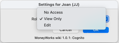 To give a user access to their role wiki, click the user name and set the access using the pop-up menu.